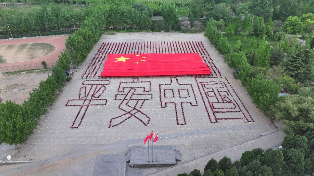 △河南登封塔沟武校的同学摆出平安中国字样