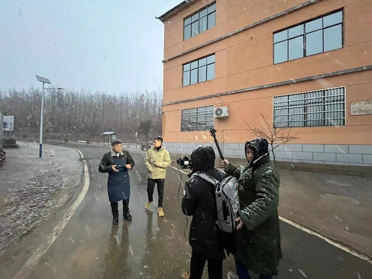 △冒着大雪进行直播彩排