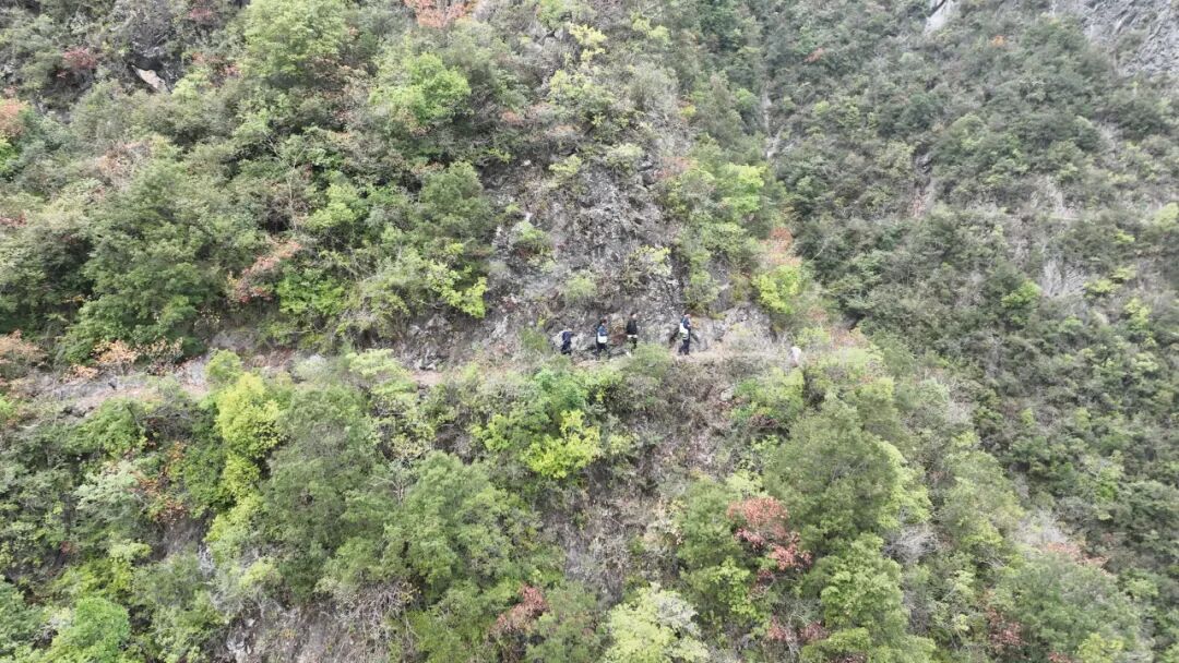 △摄制组和护林员行走在峭壁上