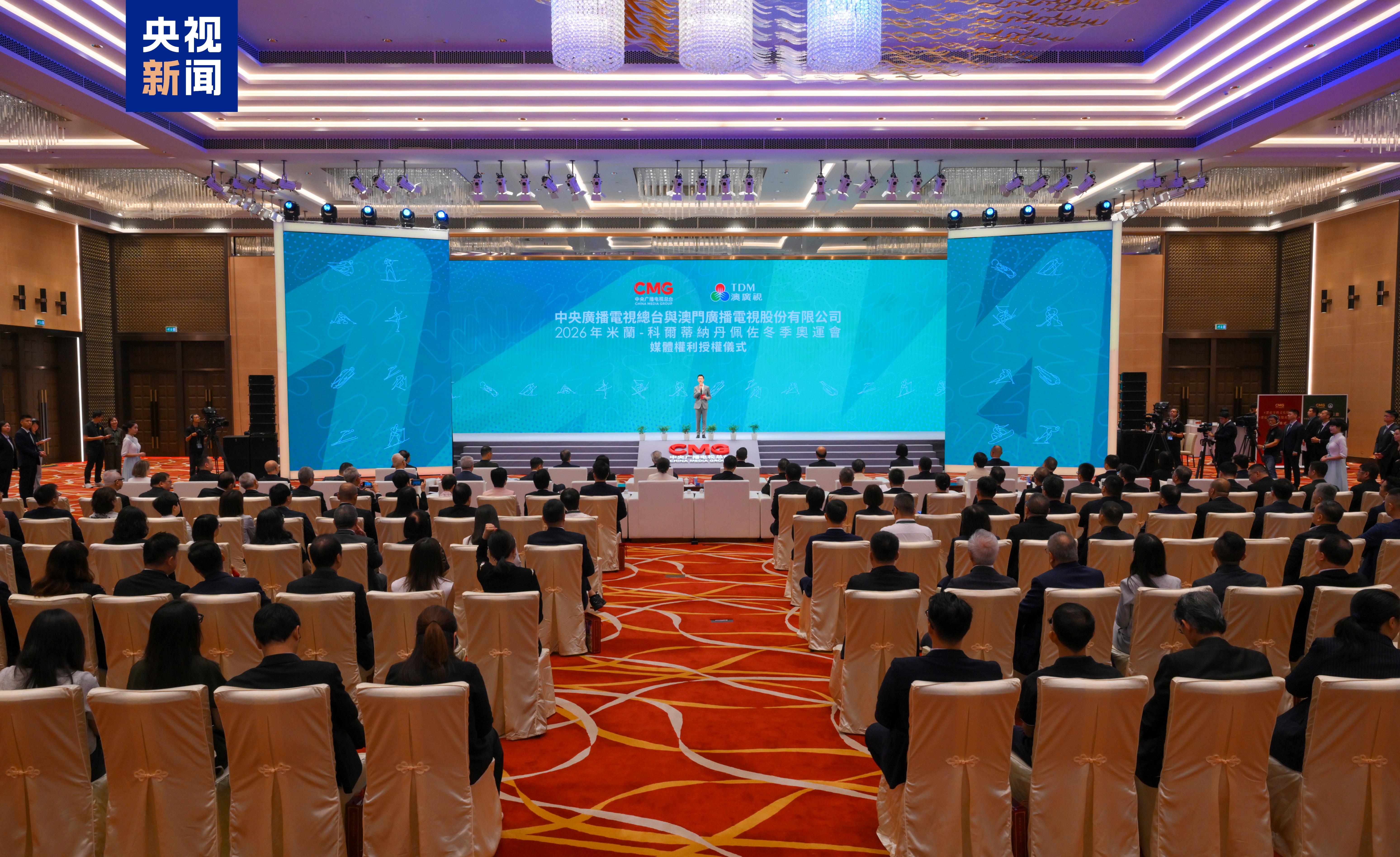 9月28日,中央广播电视总台和澳门广播电视股份有限公司在澳门交换《第25届冬季奥林匹克运动会赛事媒体权利许可协议》。总台向澳广视授权2026年米兰-科尔蒂纳丹佩佐冬季奥运会媒体权利。