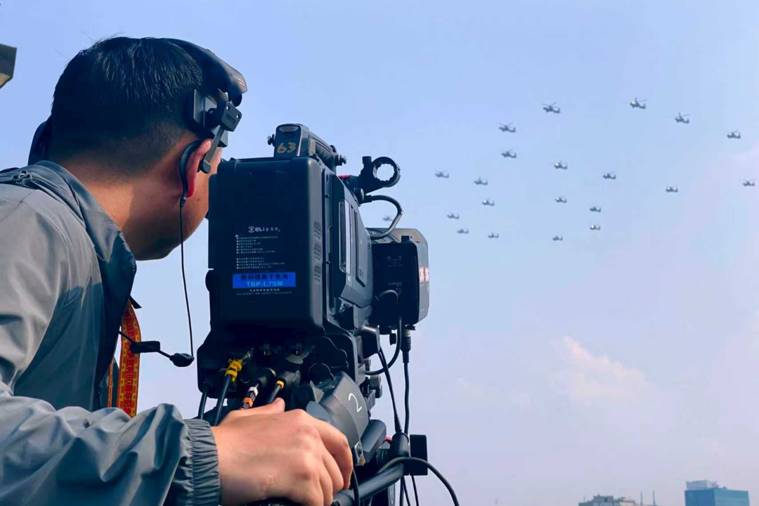 ——创新视角拍摄和特种设备使用量均创历史之最。比如:首次规模化搭建国产8K超高清转播系统,首次同时启用三条索道、首次在太和殿前广场设置系留无人机机位、首次在阅兵式的沿线设置路南高点机位、首次设置天安门正面全景机位等。